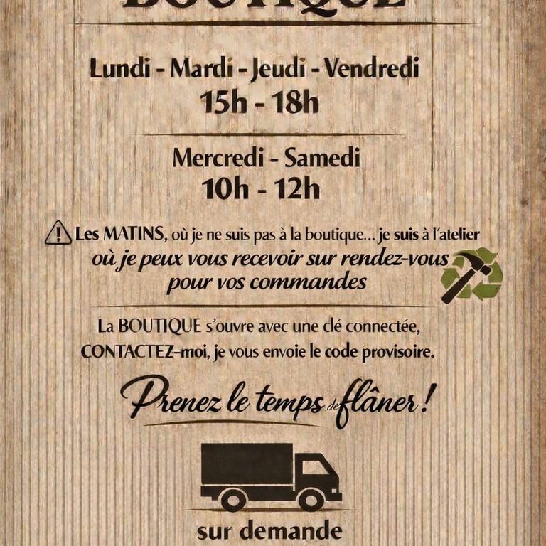 Il est IMPORTANT de m'appeler à l'avance, je ne suis pas toujours présente à l'atelier; entre les chantiers déco, les enlèvements, les livraisons ... & mes obligations de mOman.