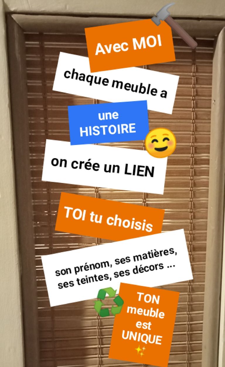 Je vous y accueille du LUNDI au VENDREDI uniquement sur RDV; pour passer commande, retirer un achat, déposer votre meuble à relooker ... et le SAMEDI nous pouvons organiser exceptionnellement les retraits si nécessaire.